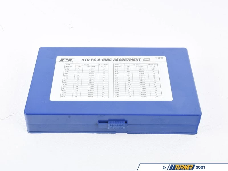 This 419 piece metric O-Ring assortment kit contains 32 popular sizes : 3 x 1.5mm, 4 x 2mm, 5 x 2mm, 7 x 1.5mm, 10 x 1.5mm, 13 x 1.5mm, 10 x 2.5mm, 11 x 2.5mm, 13 x 2.5mm, 14 x 2.5mm, 16 x 2.5mm, 18 x 2.5mm, 19 x 2.5mm, 21 x 2.5mm, 22 x 2.5mm, 18 x 3.5mm, 20 x 3.5mm, 22 x 3.5mm, 23.5 x 3.5mm, 25 x 3.5mm, 26.5 x 3.5mm, 28 x 3.5mm, 30 x 3.5mm, 31 x 3.5mm, 33 x 3.5mm, 34.5 x 3.5mm, 36 x 3.5mm, 38 x 3.5mm, 41 x 3.5mm, 44 x 3.5mm, 47 x 3.5mm and 50 x 3.5mm.