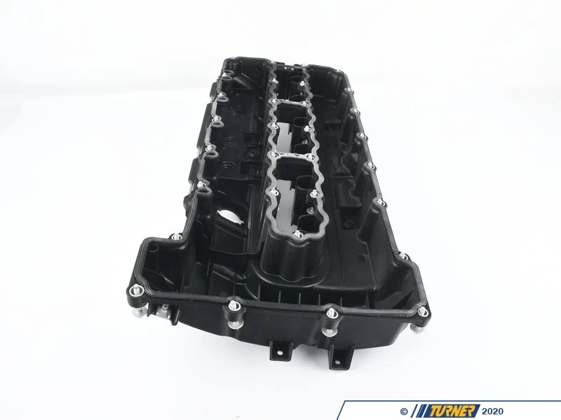 Oil Separator/Crankcase Vent. BMW integrated the oil separator system into the valve cover on these later engines. An internal manifold creates a cyclone effect and centrifugal force separates vapor from the liquid oil. The liquid oil is supposed to drain through the valve cover and back to the oil pan while the remaining vapor is burned up during combustion. It’s a very efficient and environmentally-friendly design with very few moving parts. Unfortuntely it’s not perfect and eventually the internal passageways will become clogged. This problem is made worse in cars that have short drive cycles, sit for long periods of time, do not have frequent oil changes, do not see regular runs to redline, and cars in freezing climates. If the engine never reaches optimal operating temp the oil remains in liquid form or becomes sludge. This is bad news for the entire engine, leading to excessive oil blow-by, fouled spark plugs, rough running and misfires and even premature failure of catalytic converters and oxygen sensors. Since the oil separator system in the valve cover is not available on its own, and cleaning it is nearly impossible, the complete replacement of the valve cover is the only option. Other oil vent tubes and vacuum hoses are also recommended to get replaced at the same time.