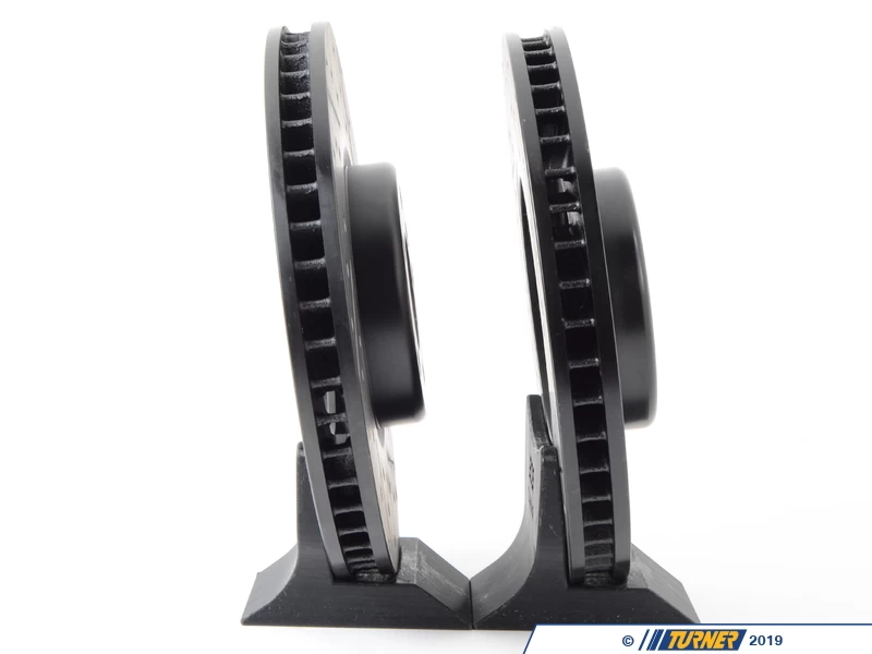 These rotors feature a unique black electro-coating that is designed to prevent corrosion. Each rotor is e-coated then double-ground and balanced to ensure an even surface with no vibration. The e-coating is the best anti-corrosion protection currently available in replacement rotors. Most aftermarket rotors are not coated, allowing surface rust to form right away, which is unattractive when brakes can be seen through your wheels.