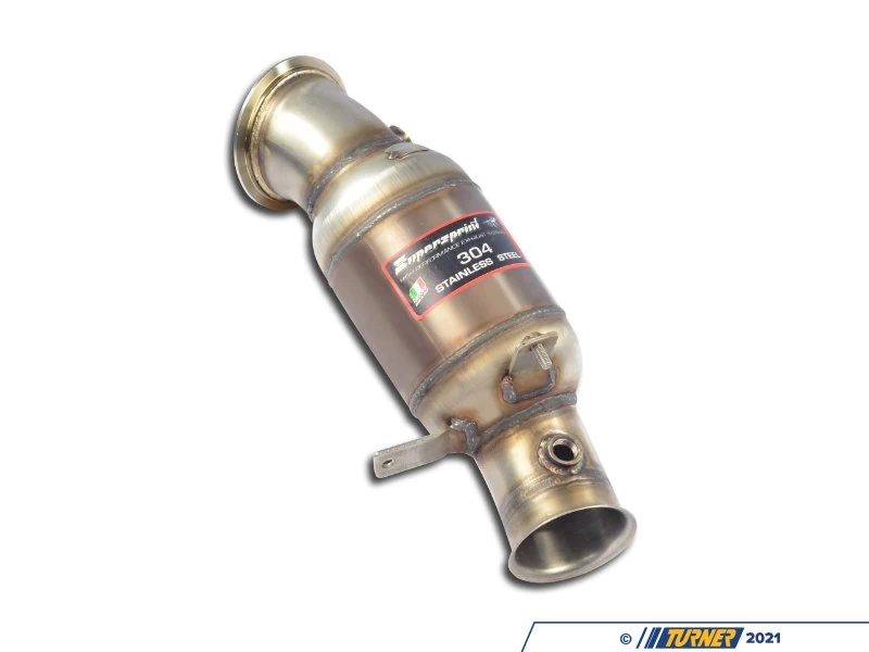 Supersprint metallic sport catalytic converters are sourced from HJS of Germany. For 30 years HJS has been supplying motorsports teams with sport cats when rules required them. HJS is now a worldwide leader in sport cat technology and performance. Rally cars, German DTM, and Formula 3 all rely on HJS for clean, reliable horsepower. Supersprint works closely with HJS to spec a catalytic converter that is correct for the vehicle and engine package. This allows for a substantial increase in flow but which, at the same time, keeps the environmental specs within European limits. With any high-flow catalytic converter, special software or other work may be required to keep emissions fault codes and check engine lights from displaying. Supersprint catalytic converters are sold for track and other off-road uses only.