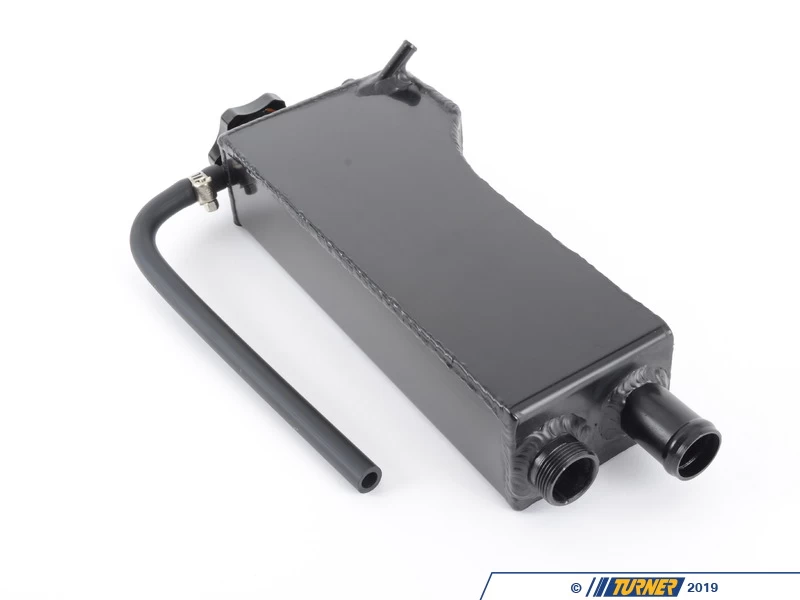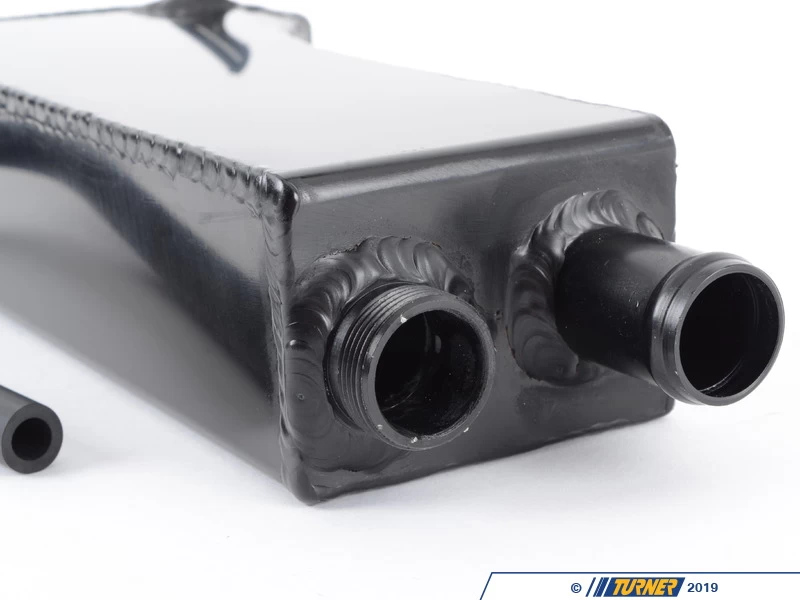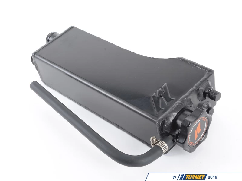 If you have ever experienced a leaking plastic BMW expansion tank you will realize the value of this aluminum version straight away. Even if a failure has not happened to you, it’s easy to tell this tank is much stronger and more durable than the plastic used in the stock design. Mishimoto has extended their cooling system expertise from aluminum radiators to expansion tank design. The original BMW plastic tanks suffer from leaks and failures with no warning. While being light weight and recyclable the design and construction of the stock tank is just not up for reliable long term use. Mishimoto has designed their tank with an integrated dipstick/bleeder and a 1.3bar cap that raises the boiling point of the system (the stock radiator cap is not compatible).