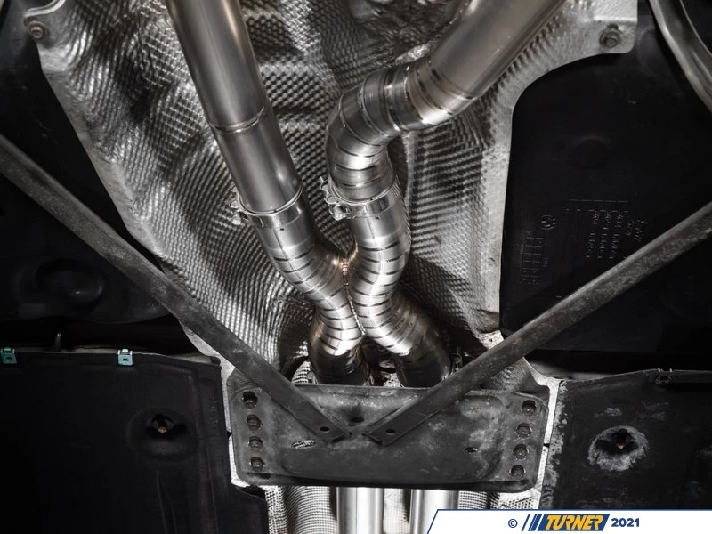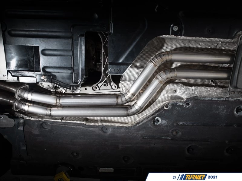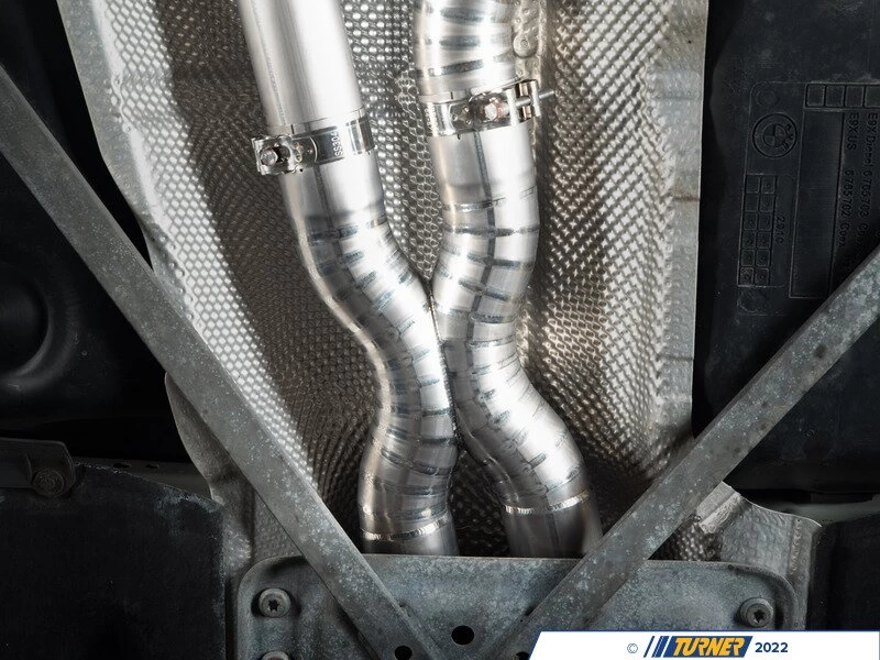 Here at Turner our mission was to amplify the N54/N55 with a proper exhaust system. To accomplish this goal, our engineers increased flow, reduced weight by 45lbs, and delivered an exhaust system that captures the full unrestricted sound of the turbo inline-6 engine. The increase in flow is gained from dual 2.5″ titanium exhaust pipes that feed into one of the best designed mufflers on the market. Our engineers specifically designed the muffler with flow in mind to ensure that even with the exhaust valves closed, our muffler flows and sounds better than the stock muffler. Weight reduction is achieved by replacing the factory piping with lightweight Ti22 titanium and Ti22 mufflers for the most weight advantage possible. The best part of the full titanium exhaust is the capability to control just how aggressive you want to your exhaust to sound, far beyond the point that the factory exhaust is able to perform. All of this plus the direct fitment and straight forward installation leads to our Titanium exhaust being the clear answer in your mission to find the best exhaust for your N54/N55 powered E92.Â