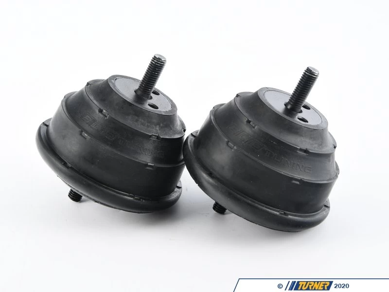 Don’t neglect your motor mounts! Most stock BMW motor mounts are fluid filled and the stiffness of the mount depends on this fluid. But over time the fluid leaks out and the strength of the mount is greatly reduced. A worn motor mount allows the engine to twist and shift around. The harder you’re driving the more shift will occur. As the engine is moving around it can contact other parts in the engine bay – usually cooling related. The mechanical fan can hit the radiator; the A/C compressor can hit a radiator hose, the exhaust will flex and may break. Twisting of the engine can also lead to shifting problems as the transmission twists with it. There are countless issues related to worn or compressed motor mounts so don’t overlook these as a regular replacement item (every 50,000 miles).