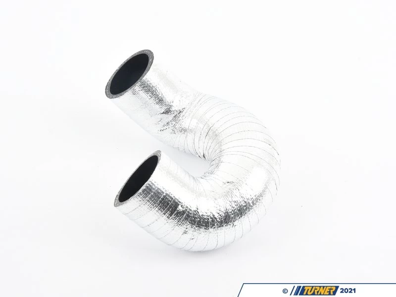 Why not upgrade when you’re due for a replacement? The ECS Tuning silicone hose replacement fixes these issue with two key features in their design. Offering this hose in a much more heat resistant silicone instead of OE rubber and having the hose wrapped in aluminum. The aluminum coating acts as a heat shield to further protect the silicone as well as reducing the temperatures forced on the coolant running through the hose.