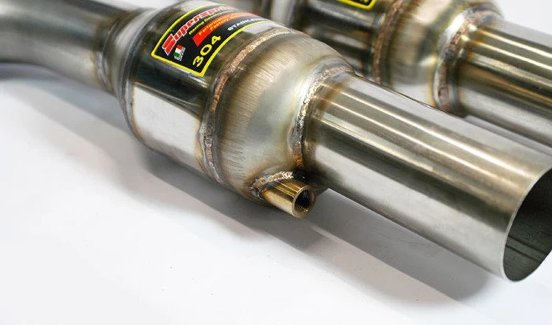 Supersprint metallic sport catalytic converters are sourced from HJS of Germany. For 30 years HJS has been supplying motorsports teams with sport cats when rules required them. HJS is now a worldwide leader in sport cat technology and performance. Rally cars, German DTM, and Formula 3 all rely on HJS for clean, reliable horsepower. Supersprint works closely with HJS to spec a catalytic converter that is correct for the vehicle and engine package. This allows for a substantial increase in flow but which, at the same time, keeps the environmental specs within European limits. With any high-flow catalytic converter, special software or other work may be required to keep emissions fault codes and check engine lights from displaying. Supersprint catalytic converters are sold for track and other off-road uses only.
