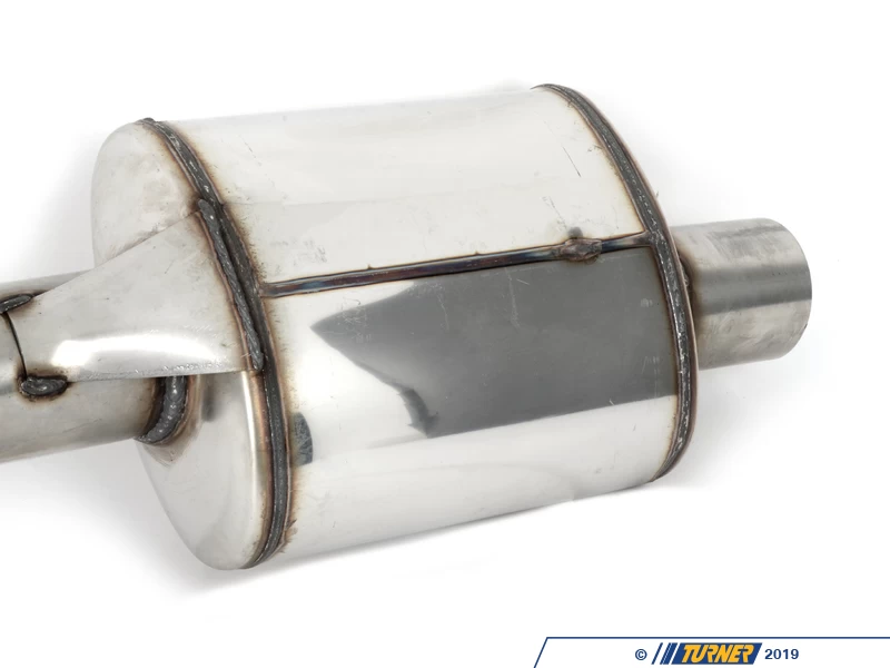 This tuned resonator replaces the factory center resonator. This resonated section is tuned along with the Supersprint muffler (a resonator-delete pipe is also available for more sound) but can be used on its own to further tune your exhaust note.