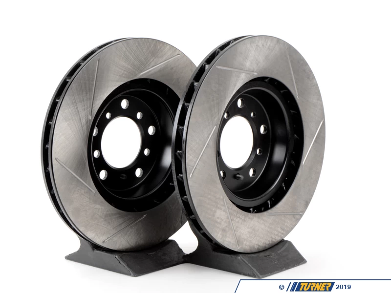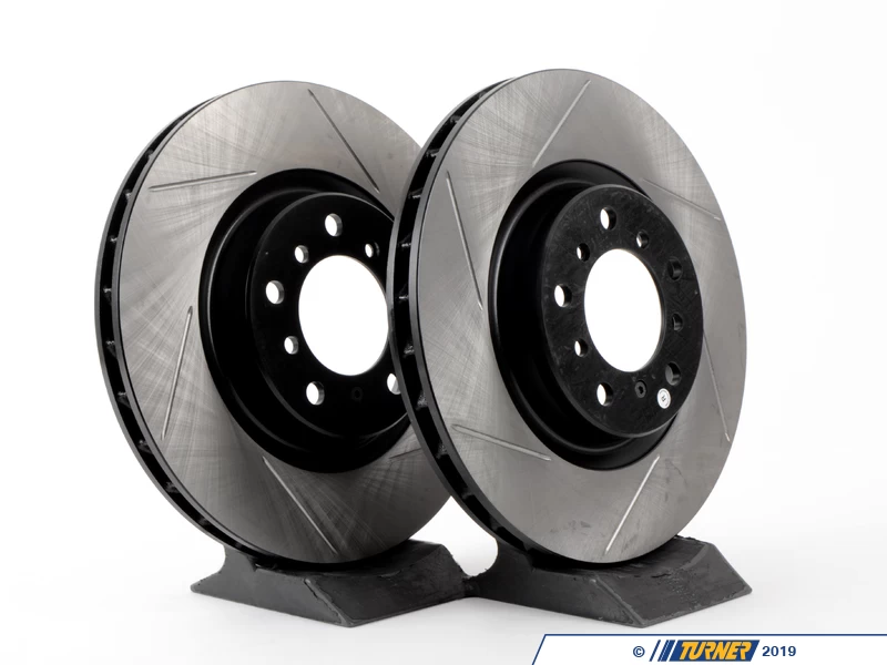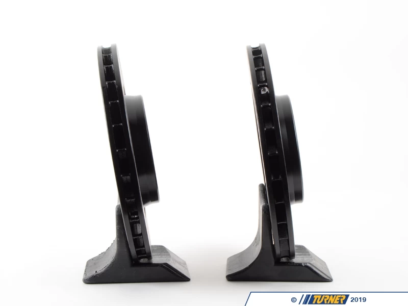 Direct replacement Front gas-slotted brake discs for E46 M3 (except CSL/ZCP brakes). These rotors feature a unique black electro-coating that is designed to prevent corrosion. Each rotor is e-coated then double-ground and balanced to ensure an even surface with no vibration. The e-coating is the best anti-corrosion protection currently available in replacement rotors. Most aftermarket rotors are not coated, allowing surface rust to form right away, which is unattractive when brakes can be seen through your wheels.