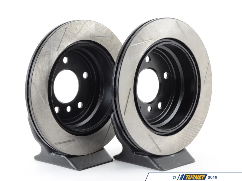 Direct replacement REAR gas-slotted brake discs for E9X 325. These rotors feature a unique black electro-coating that is designed to prevent corrosion. Each rotor is e-coated then double-ground and balanced to ensure an even surface with no vibration. The e-coating is the best anti-corrosion protection currently available in replacement rotors. Most aftermarket rotors are not coated, allowing surface rust to form right away, which is unattractive when brakes can be seen through your wheels.