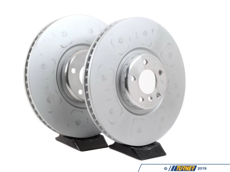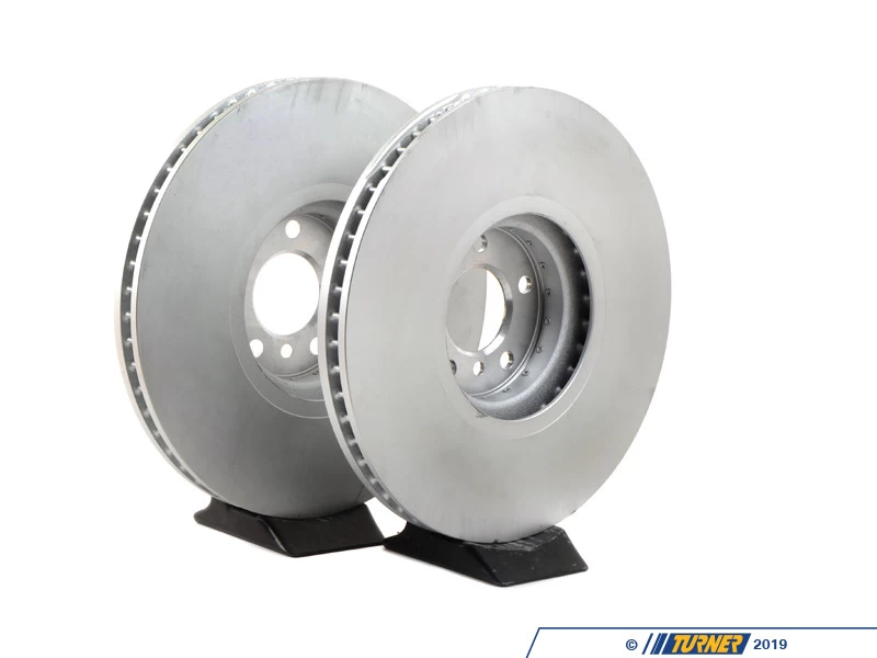 This is a set of Genuine BMW left (#34116789069) and right (#34116789070) FRONT stock brake rotors, as used on the E70 X5 M and E71 X6 M.