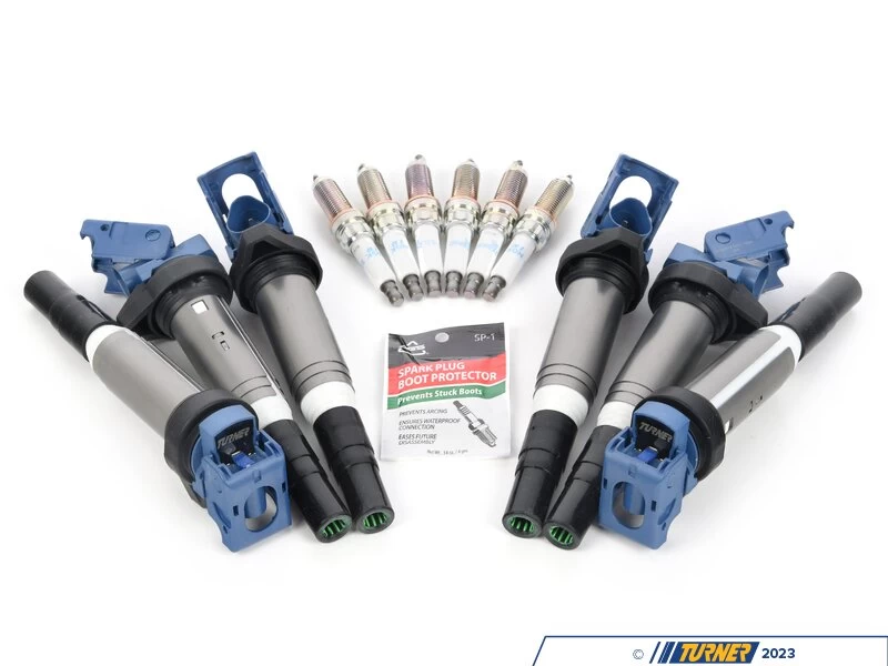 High-performance ignition kit for your S54 featuring spark plugs, Turner high-performance ignition coils, and dielectric grease to make sure you have no issues at your next maintenance interval!