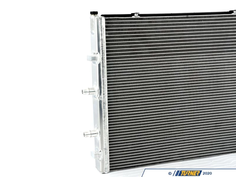 An air-to-water intercooling system wouldn’t be complete without the heat exchanger. When it came to BMW’s design, it was a solid foundation, but we still saw room to grow, literally. Our full aluminum design added 6” to the height of the core, equating in a 180% increase in external fin surface area and a 60% increase in core volume. With our heat exchanger in the S55’s system, we recorded a 10°F drop in global intercooler coolant temperatures and an average gain of 11 whp and 8 wtq when the full Mishimoto 2015–2020 BMW F8X Performance Intercooler Power Pack was tested on our Stage 1 tuned M3. For added security, we made sure to include our optional steel mesh stone guard with the Mishimoto Performance Heat exchanger to keep all the tubes and fins intact. We also utilized a variable fin pitch on our heat exchanger’s core for optimal cooling on DCT-equipped vehicles.
