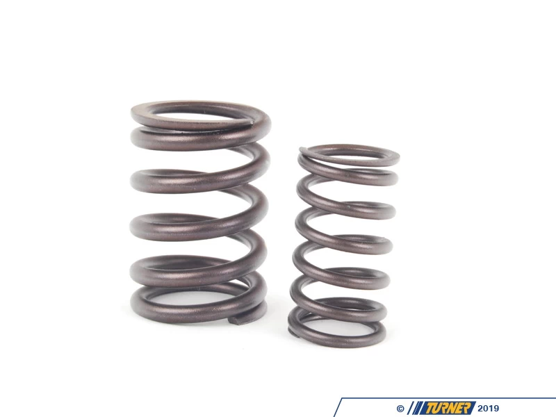 These Motorsport valve springs are from the Sport Evo 3 model but can be used in all E30 M3s (and others). We found that the stock original valve springs can be too weak when used with upgraded cams and this genuine BMW Motorsport part is an upgrade over the original design. Valve springs also get weaker over time so these are the perfect replacement when refreshing the S14 cylinder head. A weak spring can lead to a burnt valve seat or even a bent valve.ย These are also the stock springs in the M88/S38 andย Euro S50B30.