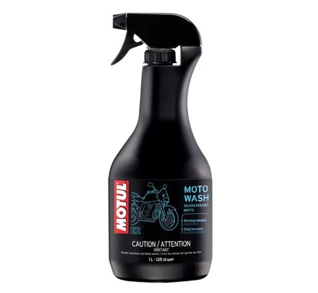 A biodegradable cleaning spray for motorcycles. Spray on and hose off.