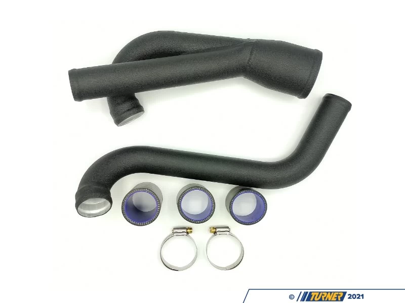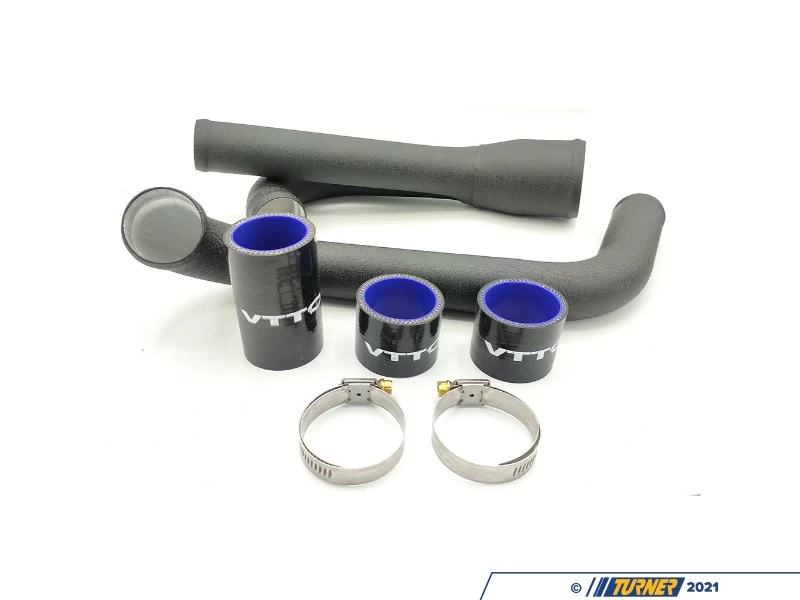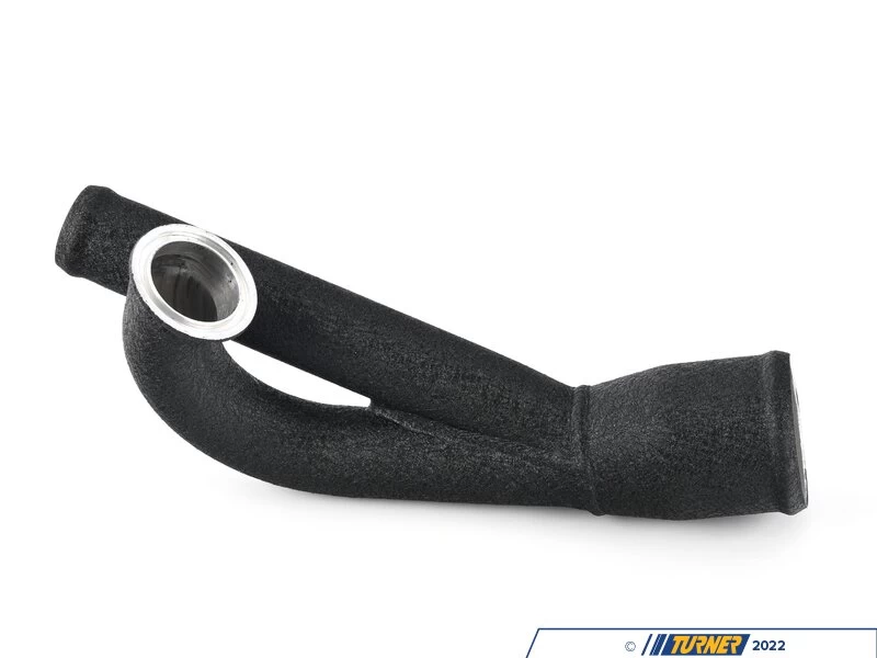 Looking to get the most efficient turbocharger operation out of your N54 powered BMW? The best way to do this is to remove all restrictions from the inlet, and charge tract. The factory charge pipe has a very small 1′ opening and a poorly designed Y section that couples the two banks into one before entering the intercooler. This VTT N54 Aluminum outlet gets rid of those restrictions and provides a full 1.5′ from the turbochargers to a smooth Y transition into a 2.5′ outlet to fit most aftermarket intercoolers. Do not be fooled by companies trying to sell you oversized 2′ charge pipes, these are not going to pick up any power, and will kill velocity. The smallest diameter you can run while still providing adequate flow is always best for flow velocity and reducing time to TQ.