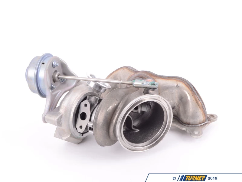 This is OEM replacement rear (bank 2)ย turbo assembly for the N54 engine in the 2007-2010 135/535. This is a new turbo from Mitsubishi, not a rebuilt unit. Mitsubishi is the original supplier to BMW for the N54 turbos. This is a complete assembly, including the manifold to the engine and the wastegage.ย It’s highly likely N54 turbos will have to be replaced before 100,000 miles. Signs of a failing turbo areย high oil consumption and blue smoke from exhaustย (not from aย leak or failing CCV system) because the internal oil seals are no longer retaining oil. Without critical lubrication and cooling effects from oil, the turbo shafts and bearings are usually the first to wear and that requires a complete rebuild. You might also see increased turbo lag or failure to hold boost, which is usually a sign of a failing wastegate or some other internal issue. With any internal problems the turbos need to be replaced. This is a new turbo so no core charge applies.