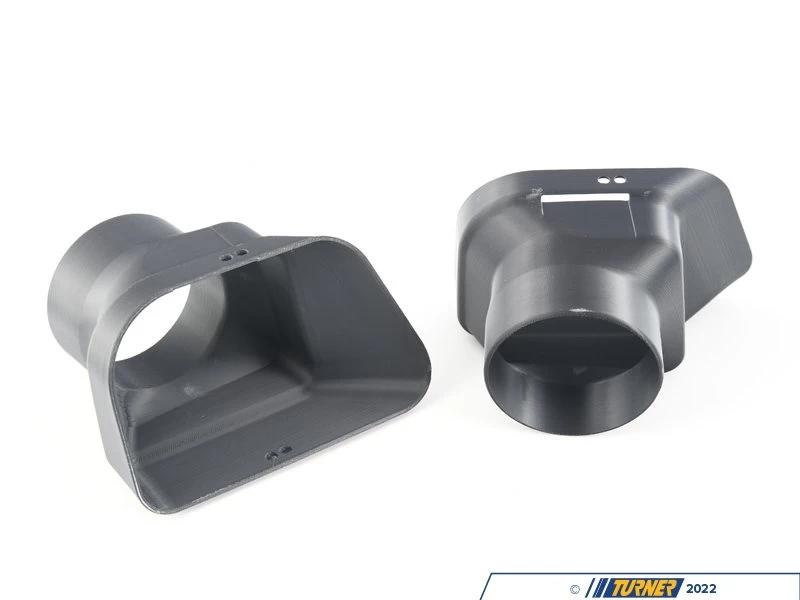 Cooling your brakes is essential for high endurance racing, or track days. Your brakes tend to fade after a 15 minute session on track, so Race German has developed a way to cool them.ย The E36 M3 has OEM ducting but does not fit up to common 3″ brake duct hose. Theseย E36 brake duct inlet adapters are CAD designed and 3D printed here in the USA. They perfectly fit around the OEM E36 inlet duct and convert to the 3″ outlet you need. There are holes printed in the ducts to secure them with provided zip ties so they do not fall out.