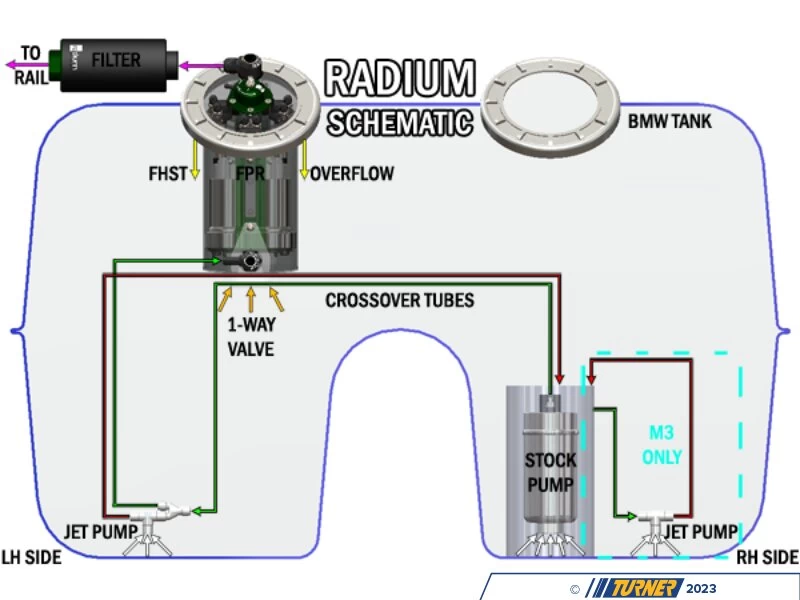 Introducing the comprehensive N54/N55 Low-Pressure Fueling Solution! With Radium Engineering’s Regulated Fuel Hanger Surge Tank at its core, this kit allows you to tailor your fuel pump setup, select an in-line fuel filter, and opt for a wiring kitย for multiple LPFP configurations in your N54 or N55-powered E9X 335i.