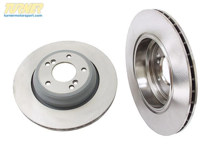 This is a set of Genuine BMW left and right REAR stock US spec brake rotors, as used on the E46 M3 and E39 M5.ย