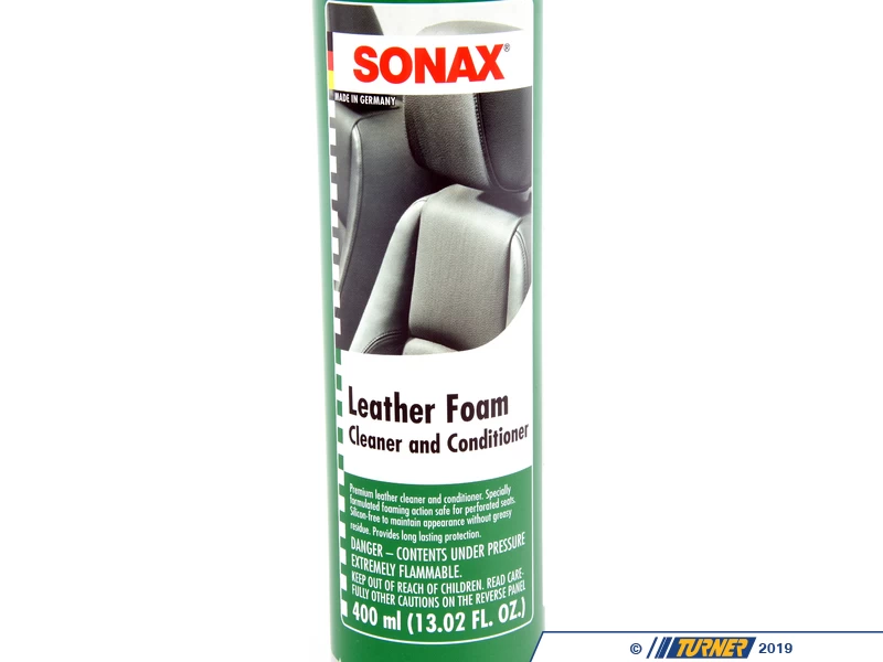 SONAX Leather Foam is a premium leather cleaner and conditioner, formulated to be tough on stains yet gentle to your fine leather. Restores leather to its original suppleness. Foaming action makes it safe for heated seats and perforated leather surfaces. A modified beeswax ingredient reduces slipping and replenishes leather. 400ml