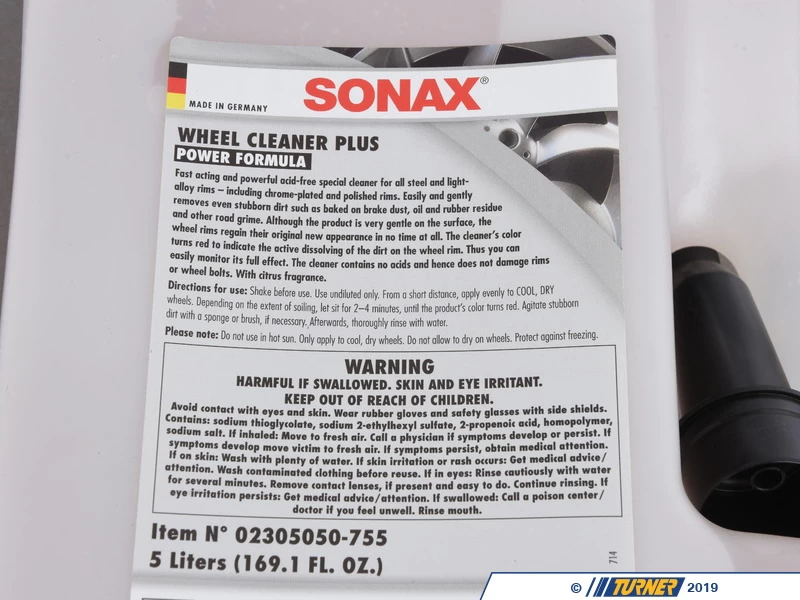 SONAX Wheel Cleaner Plus is the latest formulation for fast and effective removal of stubborn brake dust and road grime. The powerful wheel cleaner is 30% stronger and works much faster than SONAX Wheel Cleaner full effect. PLUS sprays on clear and turns red almost instantly as it begins to work. Because it is acid-free, Wheel Cleaner PLUS is safe for use on all wheel types and will not damage or corrode wheel bolts.ย