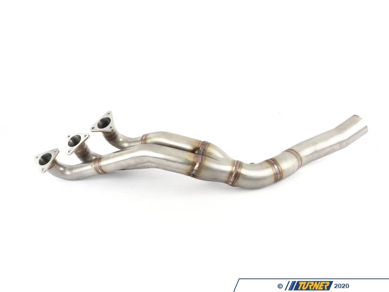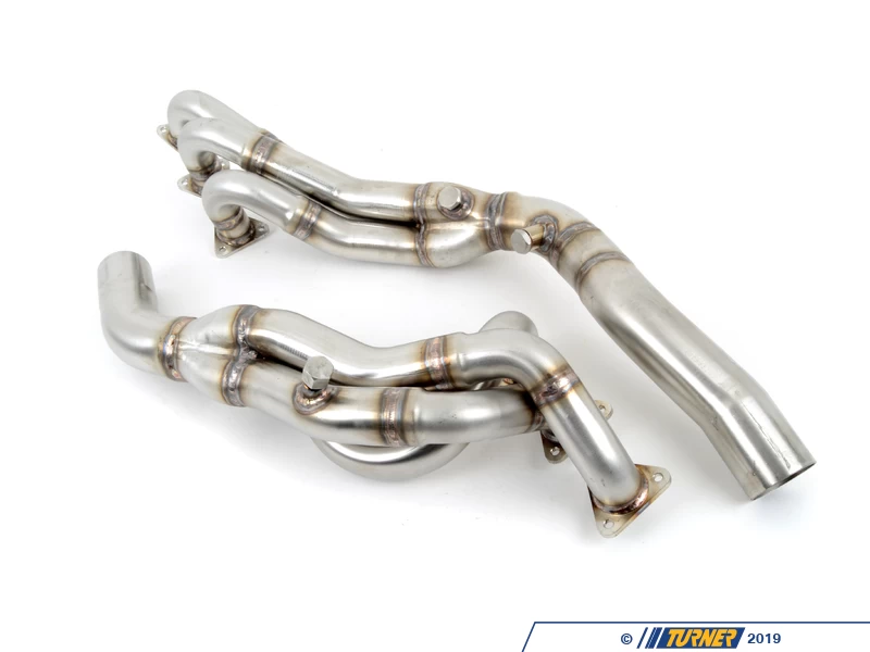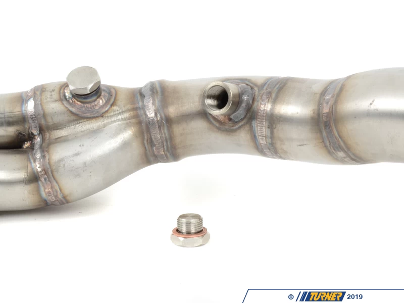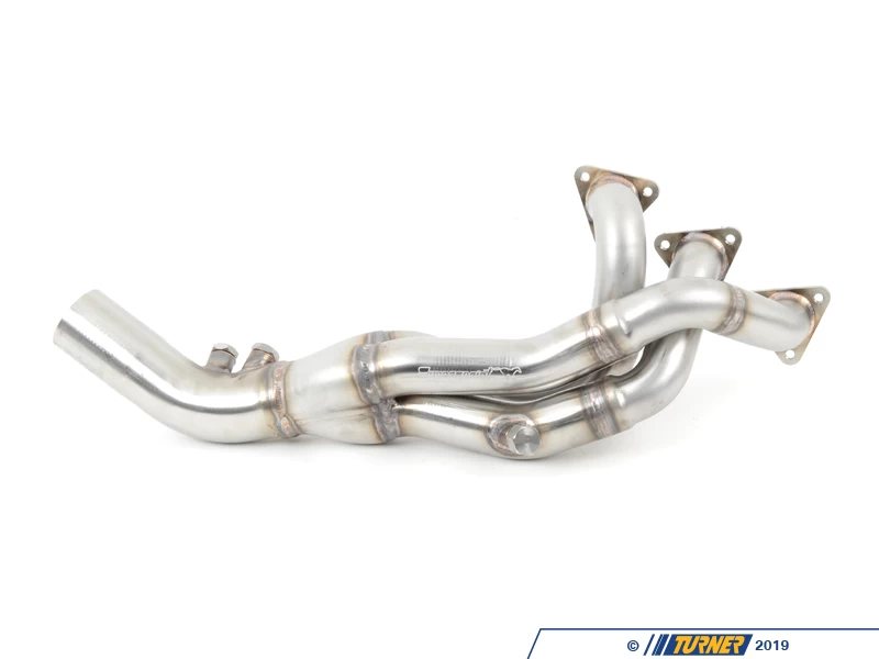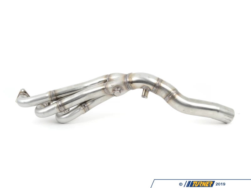 Experience the latest design innovation from Supersprint for the E46 M3 — ‘stepped’ design headers. While the technology has been in widespread use in Formula 1 for awhile, this is the first application of a stepped design on the E46 M3. In an engine that is tuned as much as the S54, airflow management is critical in getting big horsepower numbers from the exhaust. The Supersprint design is the next step in innovation in header design. By slightly increasing the size of the pipe diameters as the exhaust system moves away from the engine, the exhaust can flow more air. Supersprint’s design is tuned specifically for the S54 engine which is important in making more power without losing low-end torque. The headers merge into a precision-fit merge collector. After the headers, the stepped piping size continues into the Supersprint section 1 with or without cats. The section 1 must be purchased separately. Any section 2 and rear muffler can be used with the Supersprint section 1. Our most-popular package for track cars is for the stepped headers with no cats (straight pipe) but cats are available for people who want to keep emissions in check (or if your rules require them). Total horsepower gain with the complete system over a US M3 would be more than 30hp.