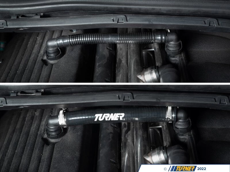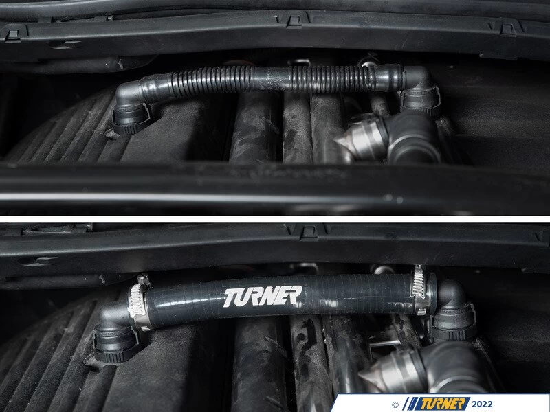 Our engineers at Turner sought out to solve the degrading issues that happens with the factory crankcase vent hose and found the best solution is a silicone replacement. Ourย Turner Silicone Crankcase Vent Hose can be used to replace the factory brittle hose to prevent vacuum leaks and lackluster performance. Simply take your factory crankcase vent hose and remove the ends;ย the factory ends can be installed on the new Silicone Vent Hose with the supplied clamps for a tight seal.ย