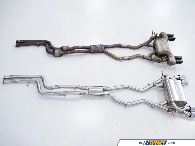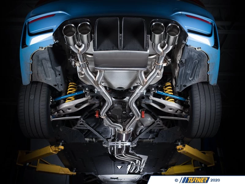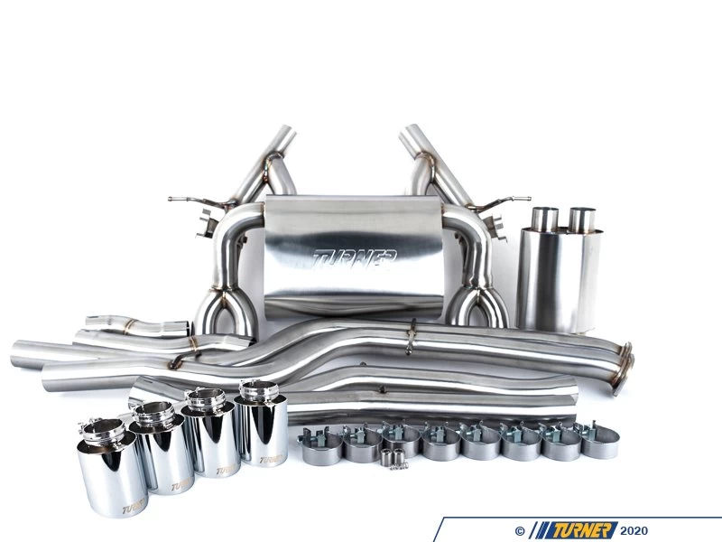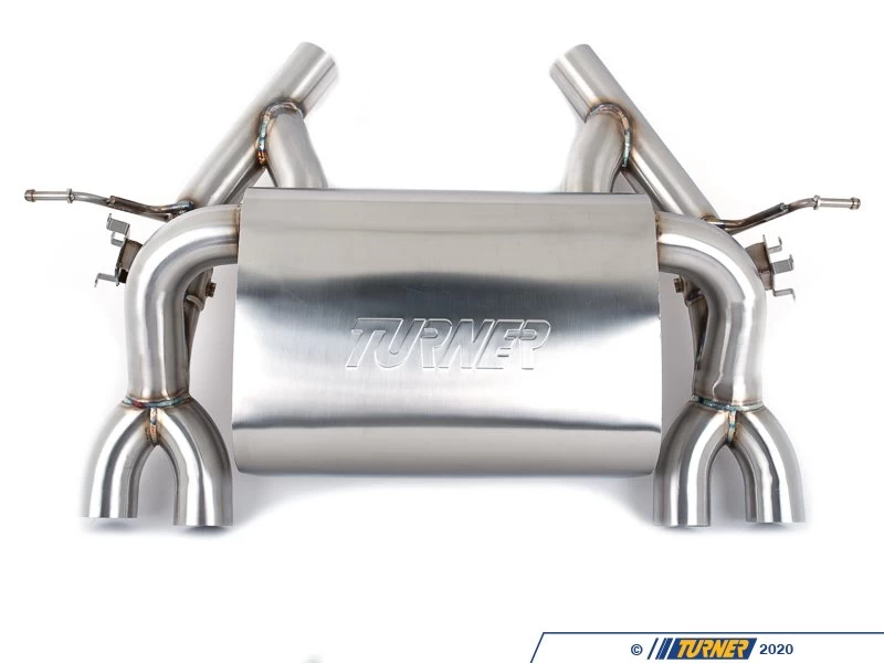 New to our lineup of exceptional performance upgrades for your BMW, the Turner F8X M3/M4ย exhaust system is here to improve your driving experience with hearty exhaust notes and a noticeable bump in performance. Our Exhaust system sports Mandrel bent dual 2.5โ 304SS pipes with a nice brushed finish. Exhaust gases flow through efficient piping to High flow, valved, stainless steel mufflers. Under normal driving conditions,ย the vacuum controlled muffler valves stay closed, and the exhaust is quite unassuming. Nobody will really even suspect your car even has an aftermarket exhaust system, as it sounds nearly identical to the factory system. But, when you open up the throttle, the vacuum controlled valves open up, and this exhaust gives your car a menacing growl. Designed to mount using the factory exhaust hangers, this exhaust is a bolt-on replacement for the OE version. To help reduce the time you spend installing the system, Accuseal slip-fit joints are included to make fitment as easy as possible.