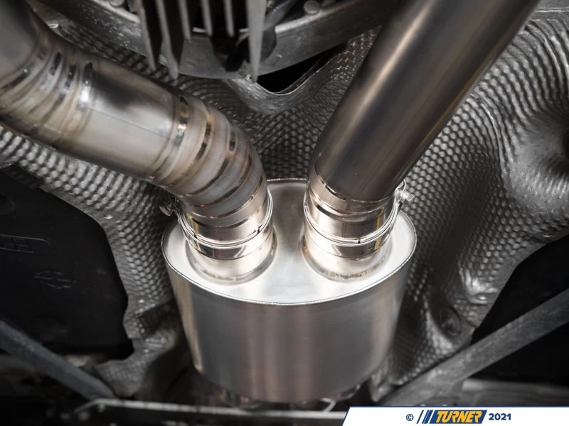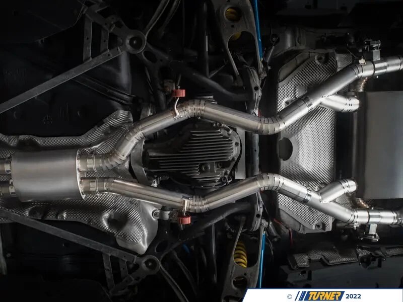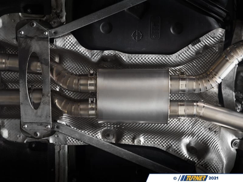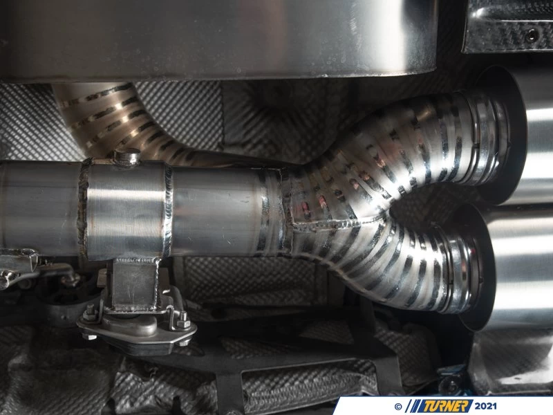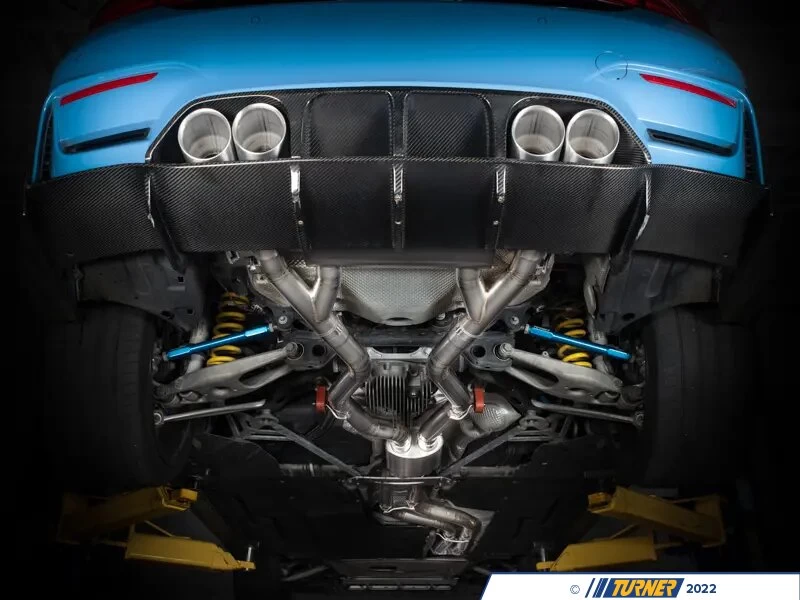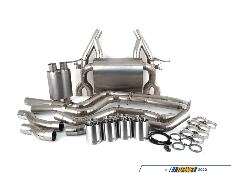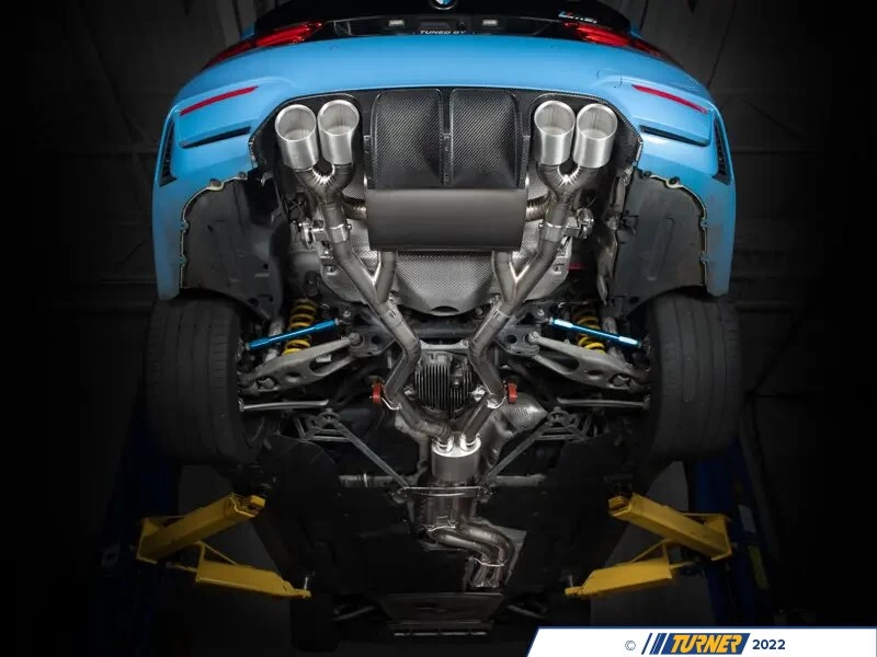 Here at Turner our mission wasย to amplify the F80/F82 with a proper exhaust system. To accomplish this goal, our engineersย increased flow,ย reduced weight by 49lbs, and delivered an exhaust system that captures the full unrestricted sound of the twin turbo inline-6 S55ย engine. The increase in flow wasย gained from dual 2.5″ titanium exhaust pipes that feed into one of the best designed mufflers on the market. Our engineersย specifically designed the muffler with flow in mind to ensure that even with the exhaust valves closed, our muffler flowsย and sounds better than the stock muffler. Weight reduction is achieved by replacing the factory piping withย lightweight Ti22 titanium andย Ti22 mufflersย for the most weight advantage possible. The best part ofย the full titanium exhaust is the capability toย control just how aggressive you want to your exhaust to sound, far beyondย the point that the factory exhaust is able to perform. All of this plus the direct fitment and straight forward installation leads to ourย Titanium exhaust being the clear answer in your mission to find the bestย exhaust for your S55ย powered F80 or F82.ย