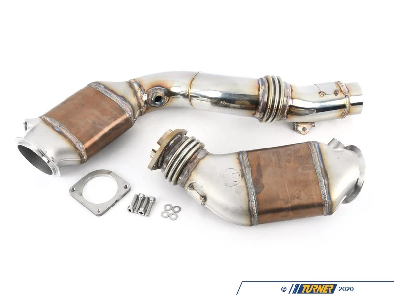 Help reduce the biggest restriction in the S55’s engine’s exhaust system by replacing the primary catalytic converter with a 200cpi Sport Catalytic Converter, allowing for significantly better exhaust flow and therefore, more power. On a streetcar, the cats are important for emissions, but can also limit your power output. They rob the turbo engine of power and torque by preventing the turbos from spooling up quicker, contribute excessive heat build-up, and lead to a total blockage if the catalytic material fails. This Wagner sports cat downpipe helps combat that by reducing restrictions through its oversized diameter piping. Special software, or stand-alone engine management, may be required to keep emissions fault codes and check engine lights from appearing.