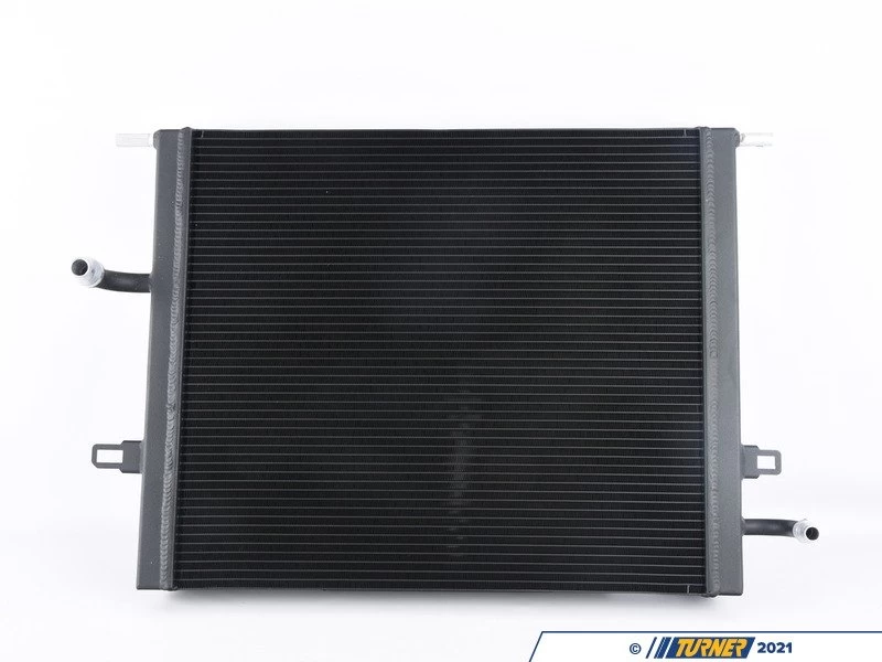The 2.0 Liter B48B20 and 3.0 Liter B58B30M0 turbo engine of the specified BMW models is equipped with an indirect charge-air cooling circuit. So the cooling of the charged air is not realized by the ambient air as a cooling medium (as usual), but made with its own cooling water circuit. A reduction of the temperature of the cooling water is directly equated with an improved cooling performance of the charged air. This is exactly where the advantages of the WAGNERTUNING upgrade radiator comes into play. The newly developed competition racing core of the WAGNERTUNING high-performance radiator increase the radiator volume of the OEM water cooler by a total of 117Â %. The calculated ratio between the inner and outer cooling surface generates a maximum heat transfer and allows at the same time enough airflow for the surrounding components (for example the engine radiator) for its own heat exchange. Furthermore, using an increased amount of cooling water, the entire system thermics can be kept at a lower level over a longer period of time.